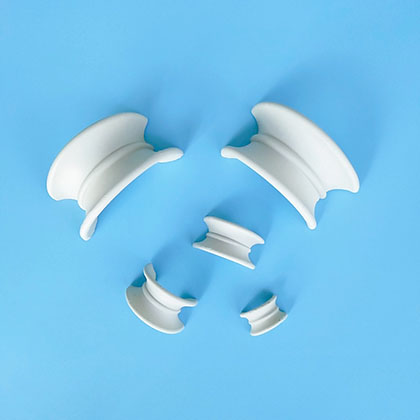 陶瓷矩鞍環(huán)屬于陶瓷填料的一種型號,它采用連續(xù)擠出的工藝進行加工,與同種材質(zhì)的拉西環(huán)填料相比,具有通量大、壓降低、效率高等優(yōu)點。比鮑爾環(huán)阻力小、通量大、效率高、填料強度和剛性較好,是目前應用廣的一種散堆填料。