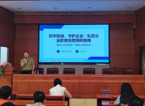 培訓中,法律專家以私營企業(yè)常見的三大職務犯罪為核心,結合近年來真實的司法案例,從犯罪構成、法律后果、司法認定標準等維度進行了深度解讀。授課過程中,專家不僅剖析了職務犯罪的隱蔽性與危害性,更針對性地提出了“事前預防、事中管控、事后應對”的全鏈條防控思路,指導企業(yè)如何構建科學有效的職務犯罪預防體系,幫助與會人員精準把握合規(guī)管理的重點與難點。