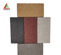 4 、膠粘石子磚:由于使用有機(jī)材料粘合而成,風(fēng)吹日曬,二年左右會出現(xiàn)老化變性,造成材料易碎、易斷等問題。
