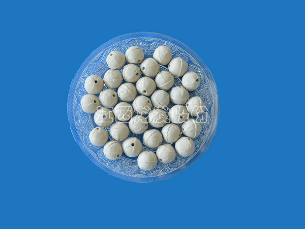 曲紋型開(kāi)孔瓷球是在惰性氧化鋁瓷球的基礎(chǔ)上通過(guò)改變外形設(shè)計(jì)制成的一種硫酸,石油化工和其他化工行業(yè)中的轉(zhuǎn)化器的催化劑承墊床用的新型支撐,覆蓋用的球形填料。該產(chǎn)品在工作環(huán)境中既能滿(mǎn)足其基本使用要求的同時(shí)還能滿(mǎn)足更好的工藝技術(shù)要求即產(chǎn)品具有高的機(jī)械強(qiáng)度、耐高溫、耐急冷急熱、抗氧化、耐磨損、低化學(xué)活性而強(qiáng)耐酸堿腐蝕的同時(shí),還有較大的比表面積和空隙率、可代替情性氧化鋁瓷球在硫酸、石油化工和其他化工行業(yè)中使用,其效果大大高于情性氧化鋁瓷球,對(duì)提高裝置的運(yùn)行效率、降低裝置的運(yùn)行費(fèi)用,提高產(chǎn)品的質(zhì)量而增加經(jīng)濟(jì)效益有重要作用。